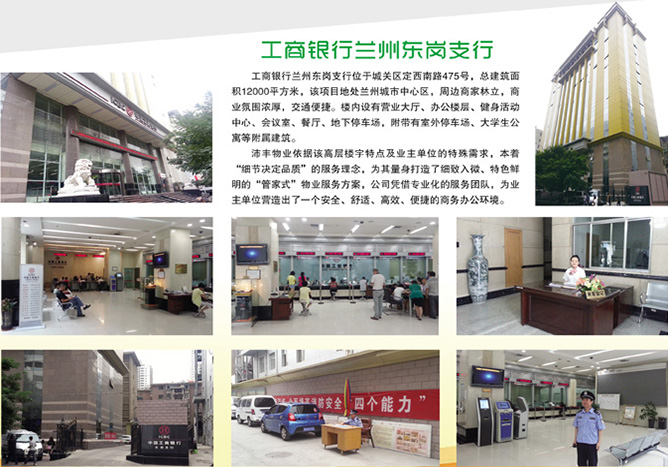 工商銀行蘭州東崗支行位于城關(guān)區(qū)定西南路475號(hào),總建筑面積12000m2,該項(xiàng)目地處蘭州城市中心區(qū),周邊商家林立,商業(yè)氛圍濃厚,交通便捷。樓內(nèi)設(shè)有營(yíng)業(yè)大廳、辦公樓層、健身活動(dòng)中心、會(huì)議室、餐廳、地下停車(chē)場(chǎng),附帶有室外停車(chē)場(chǎng)、大學(xué)生公寓等附屬建筑。